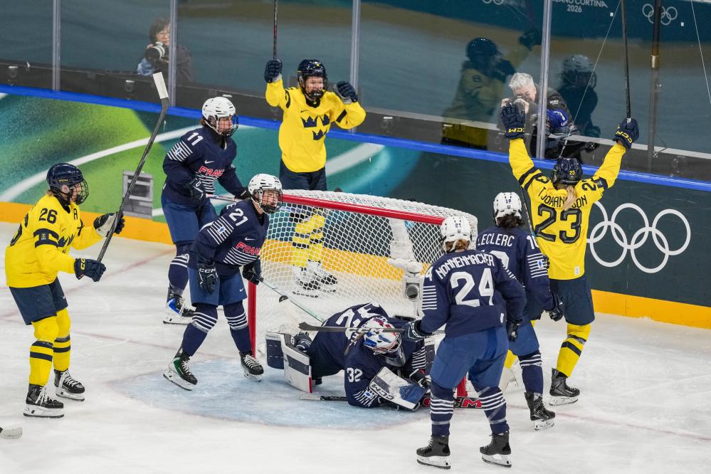 对阵法国队,已收获开局两连胜的瑞典队气势如虹,首节比赛就三度破门。面对瑞典队的凌厉攻势,法国队办法不多,虽然第二、三节的防守质量有所起色,但还是被瑞典队再入一球,最终以4球劣势输掉比赛。